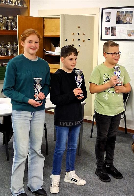 v.l.n.r. Mart Ekkelkamp 2e - kampioen Fienne Martens - Laura Ekkelkamp 3e bij de aspiranten